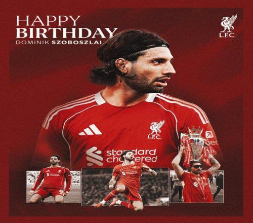 雷速体育10月25报道 今天是利物浦中场球员索博斯洛伊的25岁生日,俱乐部官方发布定制海报,向这位匈牙利球员表示祝贺。
