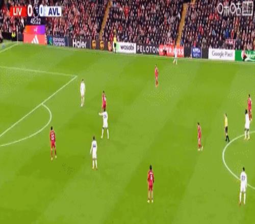 第45+2分钟,大马丁出球失误,萨拉赫破门,利物浦1-0