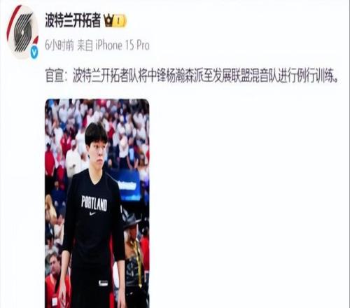 到了十一月初,球队官宣了一个消息:把杨瀚森下放到下属的发展联盟球队混音队。