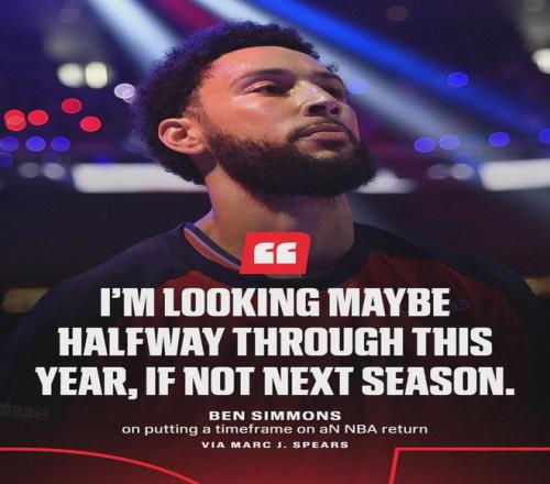 西蒙斯表示:“我预计可能是在本赛季中期,最晚下个赛季重返NBA,这取决于我在接下来一个月恢复得如何。目前我感觉很好,伤情没有反复。”球迷纷纷表示,现在能不能重返NBA,并不取决于你自己,而是得看有没有球队要你。