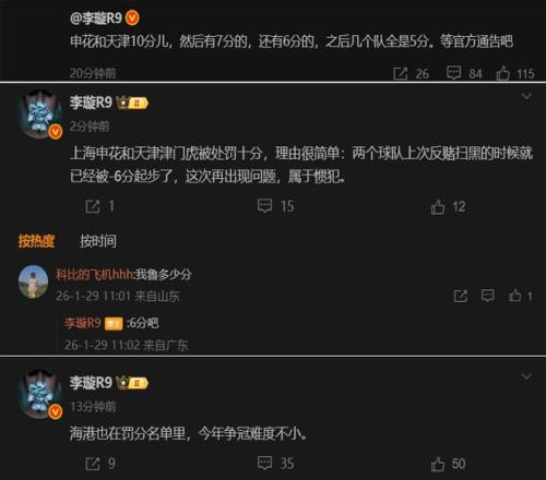 球迷想知道还有哪些俱乐部被扣分,具体名单还没出来,但李璇透露出了几个,包括山东泰山扣6分,中超三连冠夺主上海海港也被扣了。另外,李璇表示还有球队扣了7分和6分,剩下几家全是扣5分。